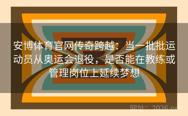 安博体育官网的成功转型案例证明,退役运动员的职业生涯并不止步于赛场。通过安博体育官网的支持,他们可以继续在体育领域实现自己的价值。